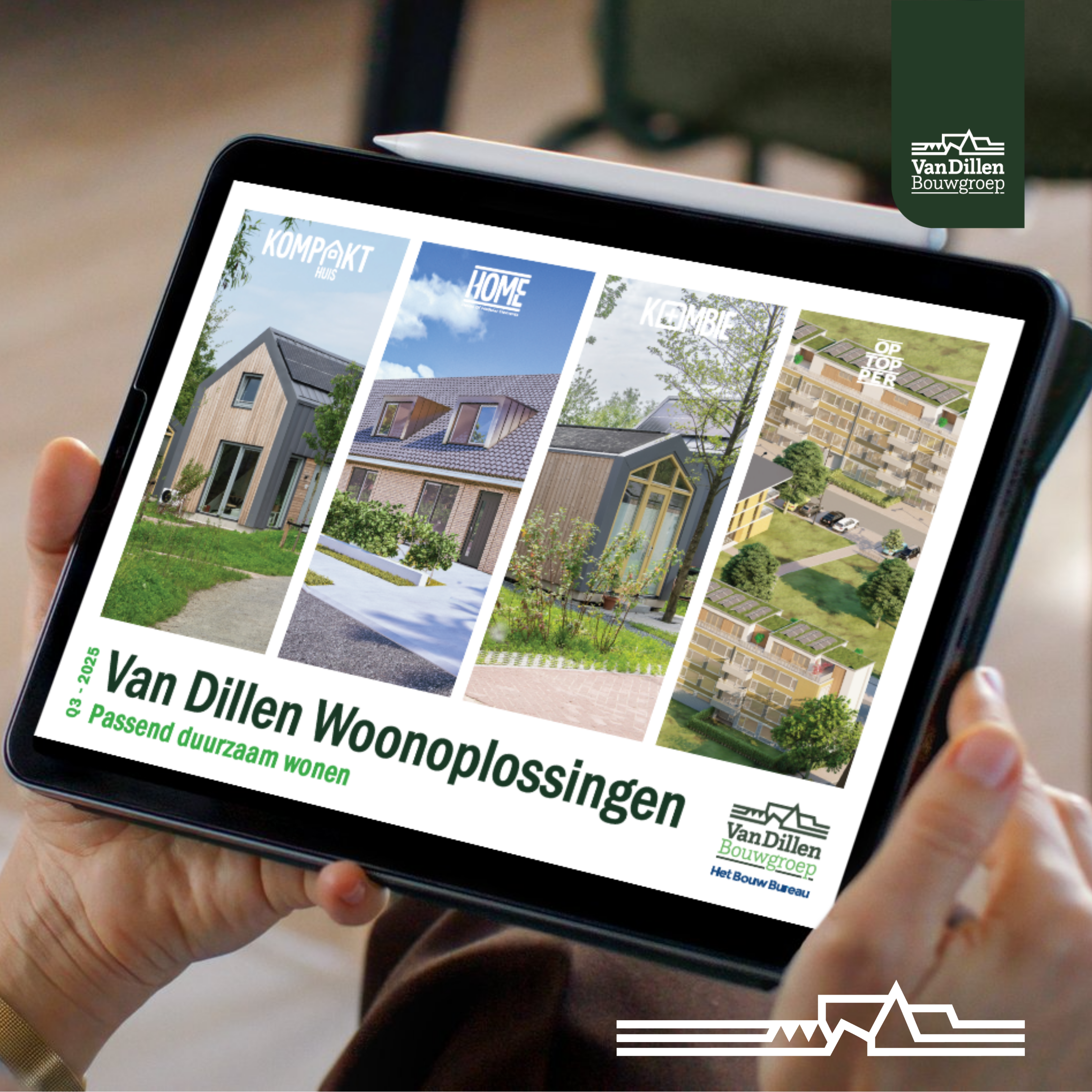Bij Van Dillen Bouwgroep zien we deze ontwikkeling als een kans om het verschil te maken. Samen met Het Bouw Bureau ontwikkelden we vier woonoplossingen die inspelen op de woonvraag van vandaag: Kompakt Huis, HOME, Kombie en De Optopper.