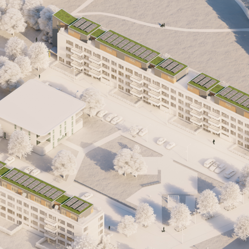 Het dakoppervlak van flats en kantoorgebouwen biedt een enorme kans voor het creëren van woningen. Onze ‘Optopper’ is van hout en daarmee zijn deze woningen met hun lichte constructie zeer geschikt voor dakopbouwen. Het bouwsysteem is op basis van bio based materialen en circulaire materialen die in onze fabrieken worden geassembleerd. En op de bouwplaats als een bouwpakket op het dak worden gemonteerd.